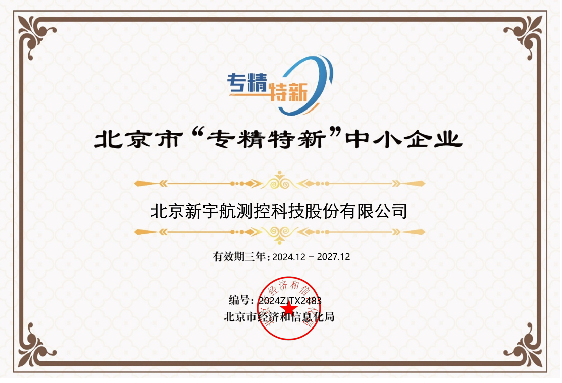 北京新宇航測控科技股份有限公司成為北京市“專精特新企業”